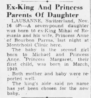 If I die before returning to the throne, my eldest daughter would most likely become the head of the royal family. Then, if she does not marry and has no descendants, this role will be played by the eldest son of my younger daughter [Helen’s son Nicholas]. This choice seems to conform to the preferences of all the Romanians that I have consulted on the question. But nothing is established yet. I cannot take such a decision alone.
